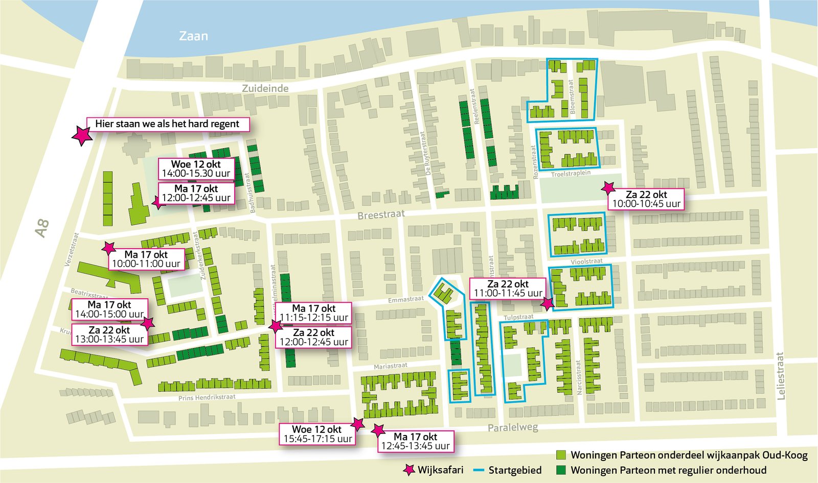 In de wijk Oud Koog in Wormerveer renoveert en bouwt woningcorporatie Parteon woningen. Dit vraagt geduld van de huurders én van de bewoners in de wijk. Met een eigen wijkidentiteit kan Parteon de buurt hierover goed informeren.